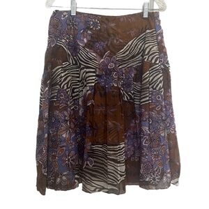 Beautiful color and print skirt fits through waist and pleats and flows at hips