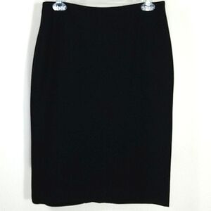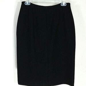 Pleated Midi Skirt Straight Pencil Black lined crepe kick pleat Classic Timeless