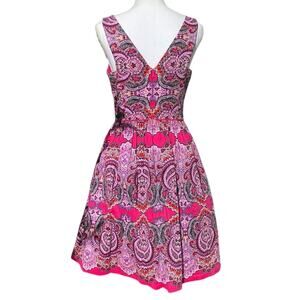 Pleated Multicolor Dress Sleeveless Summer Maggy London Size 6 Bright Floral Brunch full skirt with tulle underneath