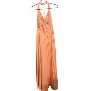 Pleated Peach Maxi Dress Size 7/8 Retro 1970 VTG Halter 29" Empire Waist Formal