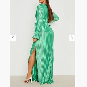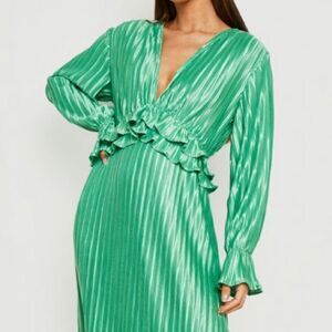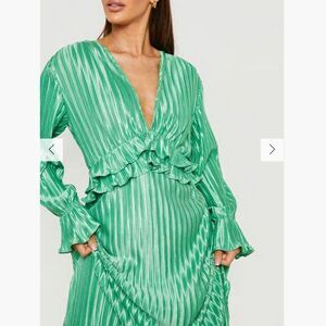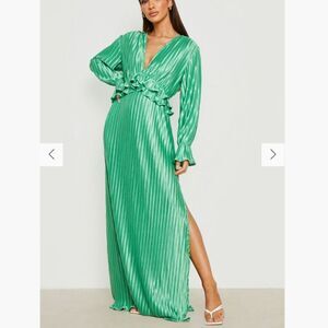 Pleated Plunge Green Ruffle detail maxi Dress size 4