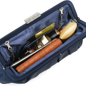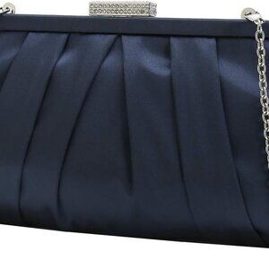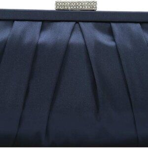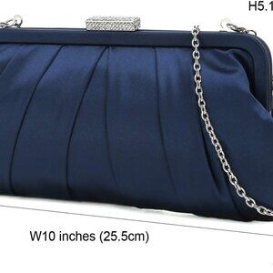 Features: Crafted from luxurious satin with lovely pleat details that add a touch of sophistication. The metal frame is fully wrapped in satin and features a sparkling diamante-encrusted clasp, giving this clutch a chic, polished look. The roomy interior can hold your small essentials like makeup, cards, keys, and phone. It comes with a sturdy, detachable O-shape chain strap in silver-tone that won’t snag your hair or rip your clothes.
