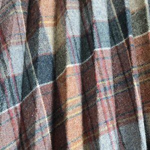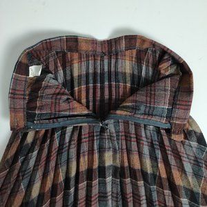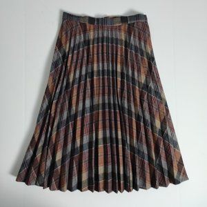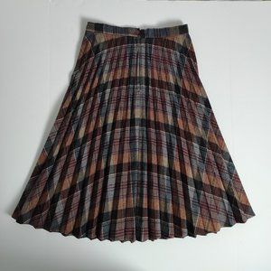 Pleated Tartan Midi Skirt Plaid Wool Blend Vintage 70s Burgundy Blue Small