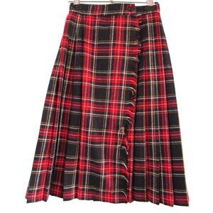 Pleated Tartan Plaid Wool Kilt Wrap Skirt Brass Pin Fringed Edge Modern XS EUC
