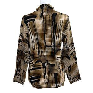 Pleated Top High-Neck Long-Sleeve Brown Black Stretch Womens Sze M