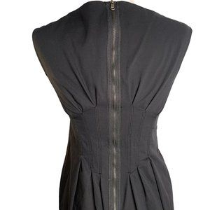 Pleated Waist Sleeveless Sheath Dress S Black Lined Lace Trim Exposed Zipper