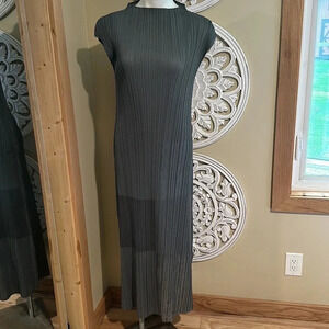 Pleated Women Dress Turtleneck Long Dress Elegant Vintage Dress