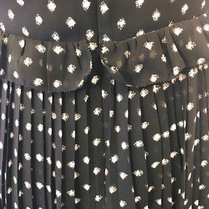Cute pleated dot dress with frill detail. It’s like a wrap style dress with zipper in the back. Only worn a handful of times. In great condition!