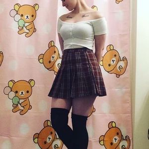 Burgundy, orange, and white pleated miniskirt from forever 21. Sized small. High waisted. Zips up on the back