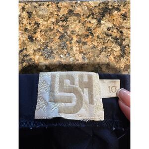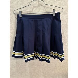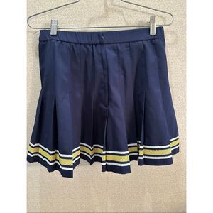Pleated mini skirt with a side zipper. Navy blue with yellow stripe. Waist is 26 inches and length is 15 inches.