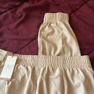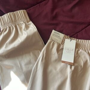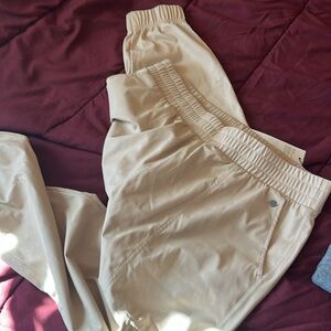 Khaki/tan pleather joggers. NWT. Just tried on. Stretchy waistband and stretchy band at ankles. Pockets as well.