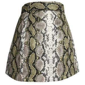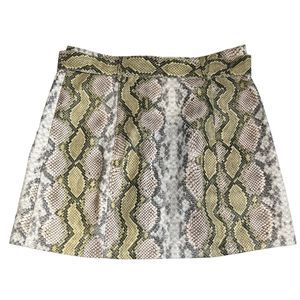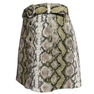 Pleather Mini Skirt Snakeskin Look Le Lis Button Front Belted Green Size Small