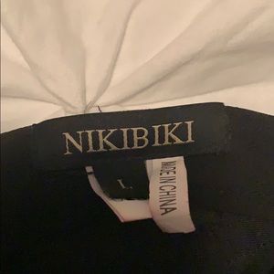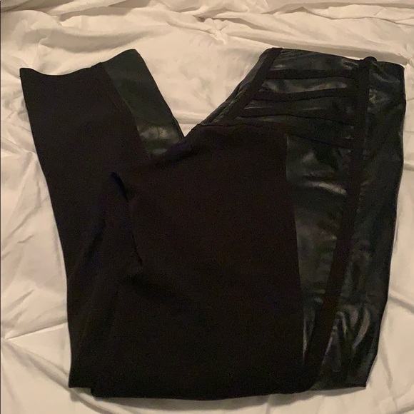 Mixed panels of pleather and stretch pants