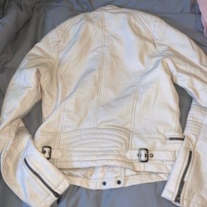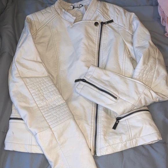 All white pleather jacket. NWOT. No stains, rips, etc. comes from a smoke free home.Comment any questions/ offers 😊❤️ size medium but fits more small