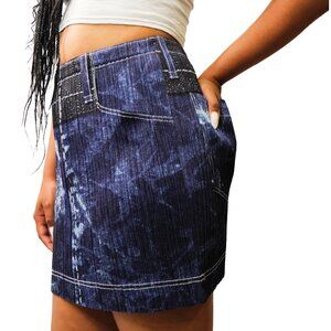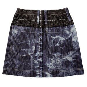 Pleats Please by Issey Miyake acid-wash denim-print mini skirt with belt loops and pockets, rendered in pleated construction.