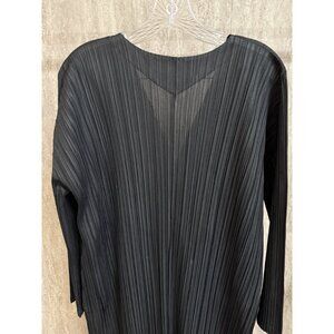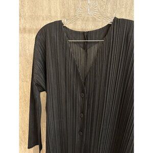 Pleats Please Issey Miyake Black Long-Sleeve Button-Front Pleated Dress Womens S