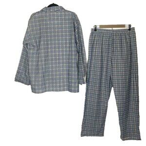 Pleetway Men’s Pajama Set Size Large Balloon Seat Plaid Blue and White