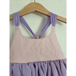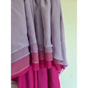 Light pink bodice with hi-low chiffon layers in pinks and purple