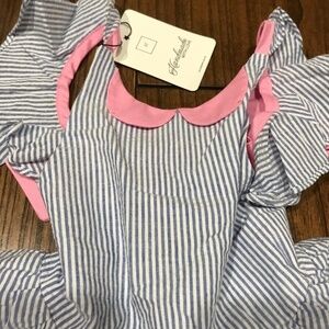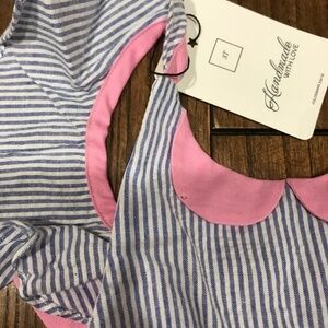 NWT Pleiades Dress Girl Size 3T Blue Stripe Pink Ruffle Sleeve Tie Back Bow