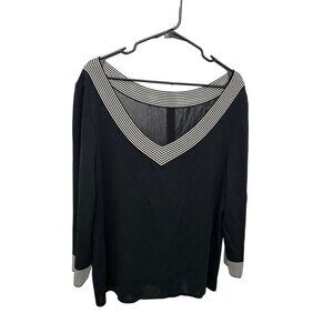 Plein Air Womens Black and Gray Striped Open Back Lightweight Sweater SZ Extra L