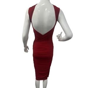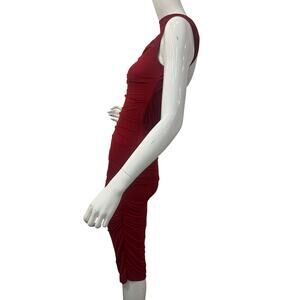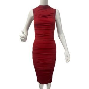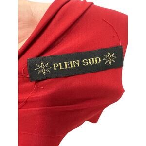 Plein Sud Sheer Mesh Ruched Sleeveless Knee-Length Wrap Dress Red Women's Size 8