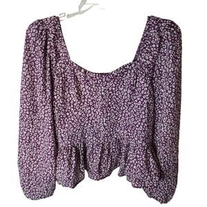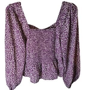 Pleione Animal Print Puff Sleeve Sweetheart Peplum Blouse, NWT, Small