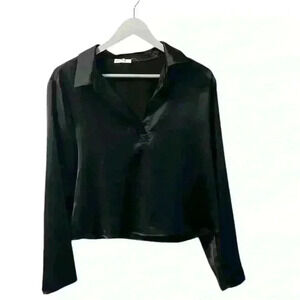 Pleione V-Neck Long Sleeve Blouse – Black – Size Large