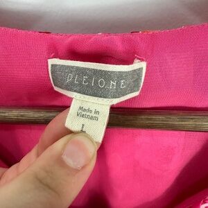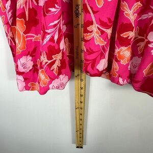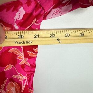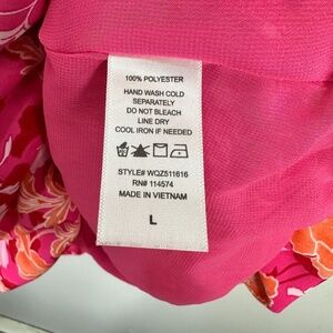 Bright and bold, this Pleione women’s size Large blouse features a vivid pink and red floral print with puff sleeves and a flattering V-neckline. The lightweight, flowy fabric drapes beautifully and gives off major romantic and coquette energy—perfect for spring brunches, garden parties, or layering with a cardigan. Made in Vietnam, 100% polyester.