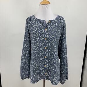 PLEIONE BLOUSE WOMENS XL EXTRA LARGE MULTI BUTTON FRONT FLORAL PRINT LONG SLEEVE