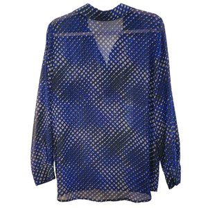 Pleione Blue Multicolor Geometric V Neck Long Sleeve Tunic Blouse Women Size M