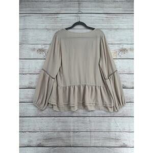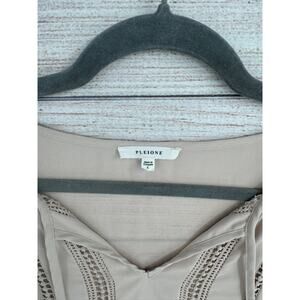 Pleione Crochet Accent Peplum Blouse Womens Large Tan Beige Tie Neck