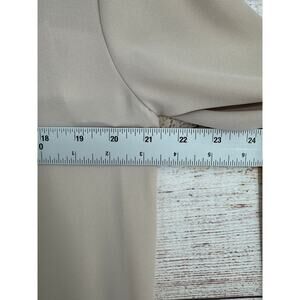 Item: Pleione Crochet Accent Peplum Blouse Womens Large Tan Beige Tie Neck