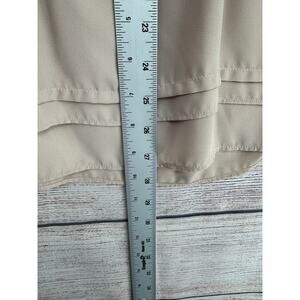 Item: Pleione Crochet Accent Peplum Blouse Womens Large Tan Beige Tie Neck