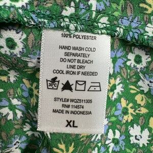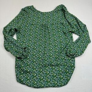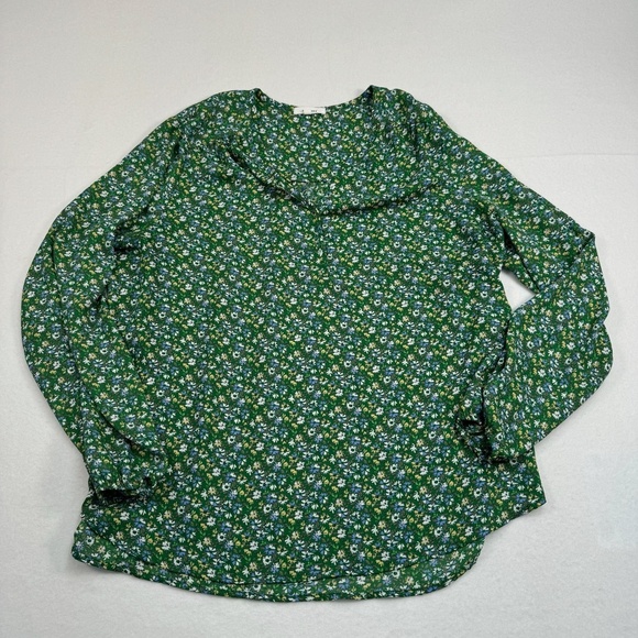 Pleione Ditsy Floral Long Sleeve Blouse Womens Size Xl Green V Neckline