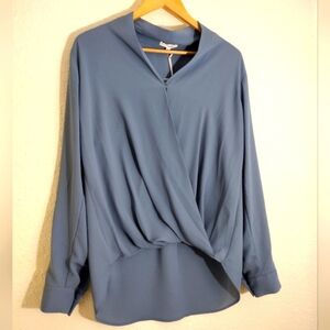 Women's Pleione faux wrap 3/4 roll sleeve blouse