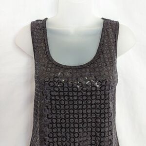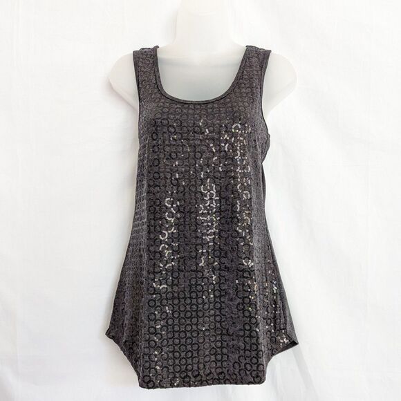 Pleione Front Sequin Dark Gray Sleeveless Top Size M Stretch Glam Classic
