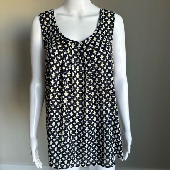 Pleione Geometric Navy & White Sleeveless Blouse Size L