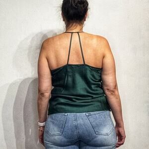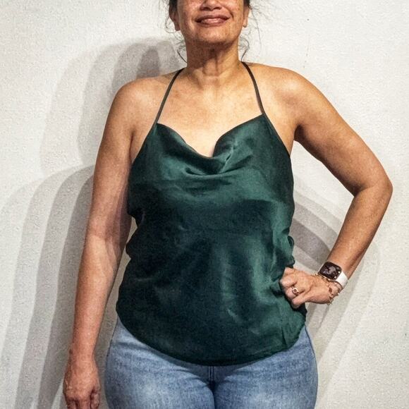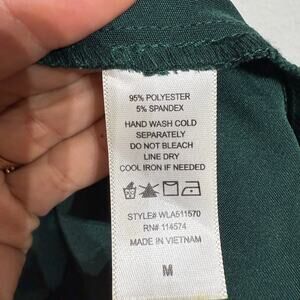 Medium green blouse by Pleione in excellent preowned condition. Approximately 24.5" length, 20" bust.