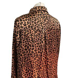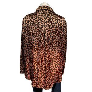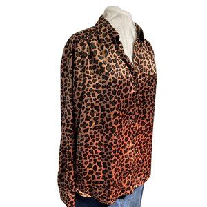 Pleione Leopard Print Satin Blouse XL Button-Down Long Sleeve Lightweight Womens