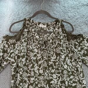 Pleione NOWT Women's Small Shoulder Cut Out Blouse Dark Green Flowy