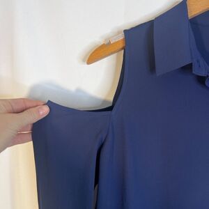 Pleione Navy Dressy Blouse Long Sleeve Cut Out Shoulder Button Front Size MD****