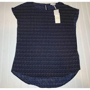 Pleione Navy Print Tunic Womens XS Rayon Hi Low NEW 1083