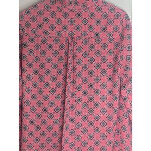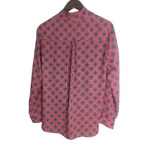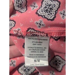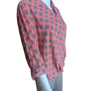 Pleione Pink & Black Geometric Print Sz M Wrap Style Blouse -Roll-tab Sleeves