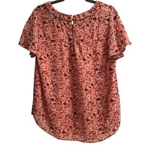 Pleione Pink Floral Flutter Sleeve Blouse Size S Small