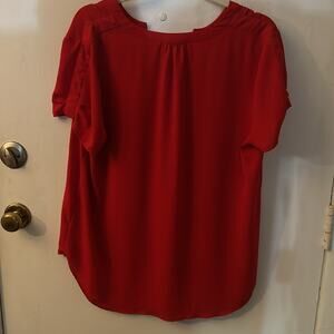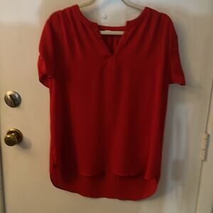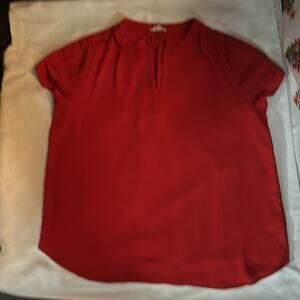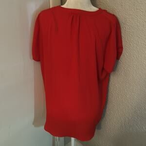 Pleione Red V-Neck Short Sleeve Blouse M Cherry Girl Holiday Corporate Siren