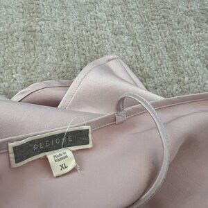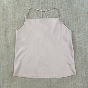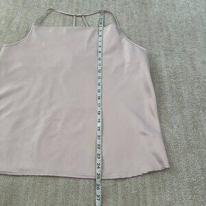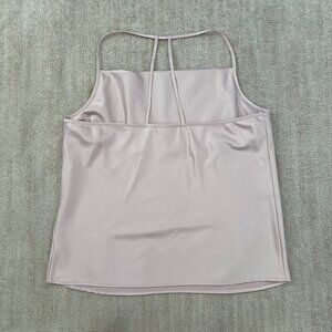 A pink strappy sleeveless flowy cami blouse top. Face / outside of fabric is shiny
