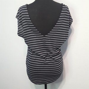 Pleione Stripe Black/Gray V-Back Shirt Size L