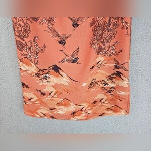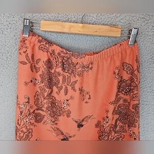 Pleione Women Crane Floral Mountains Pull On Skirt Sz S Elastic Waist Terracotta