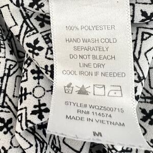 Pleione Womens Blouse Size Medium White Geometric Pattern Chiffon Short Sleeve