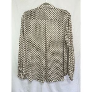 Pleione Women's Geometric Design Career Button Up Blouse Size L Long Sleeve. Excellent pre-owned condition, no visible flaws.